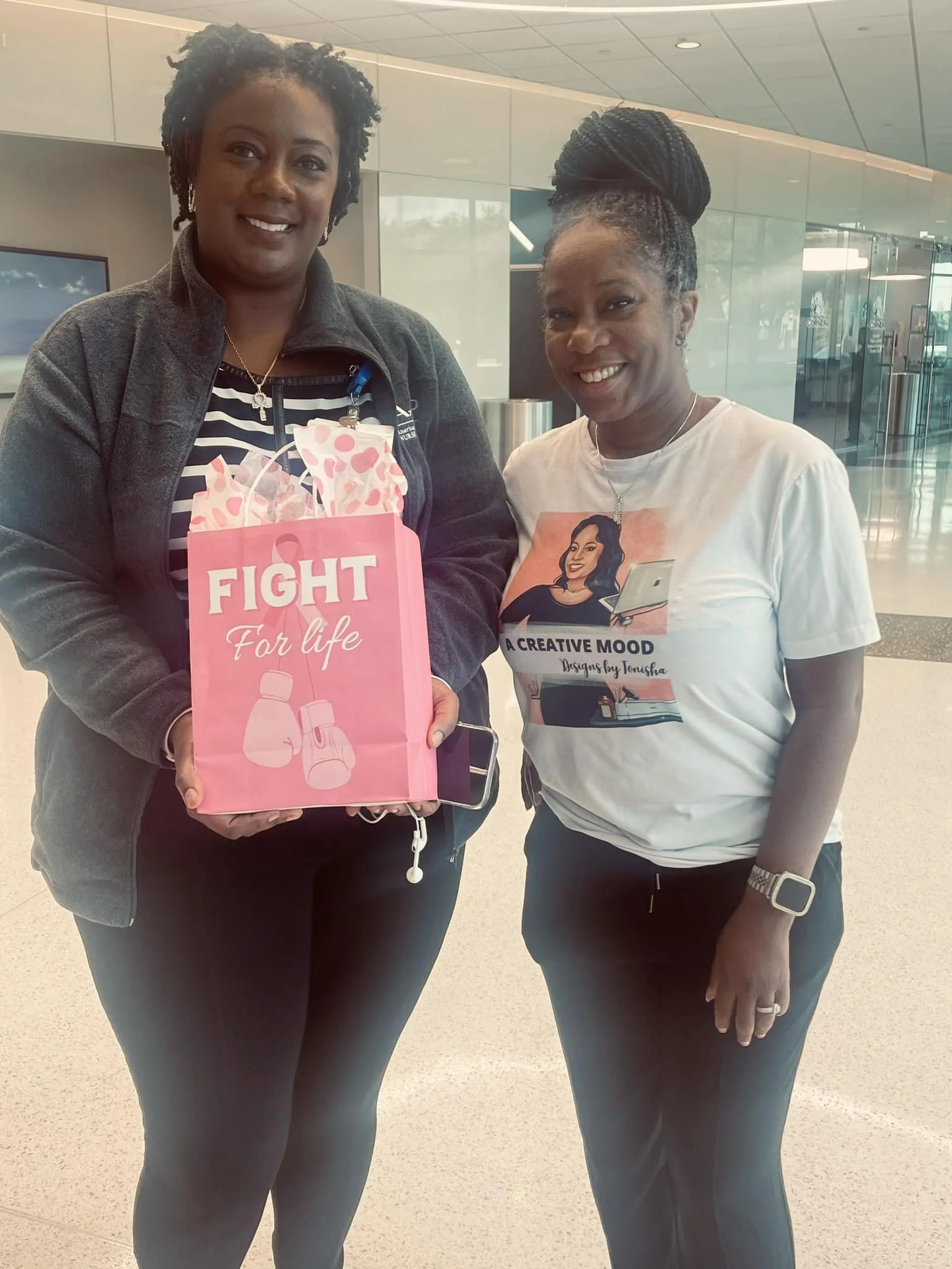 One a month we gift a bag with customized items to a breast cancer survivor (Contents will vary and no bag is the same)